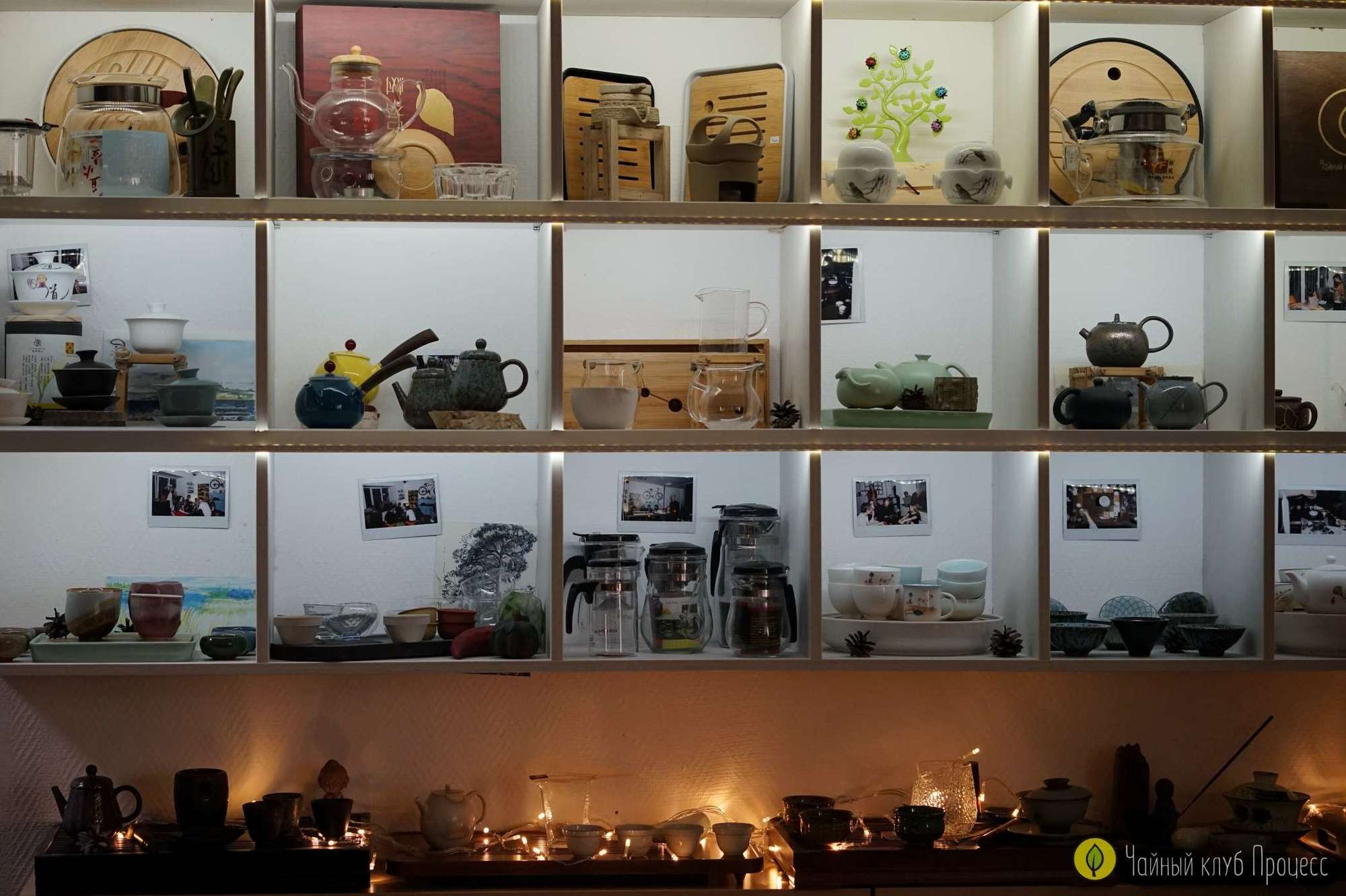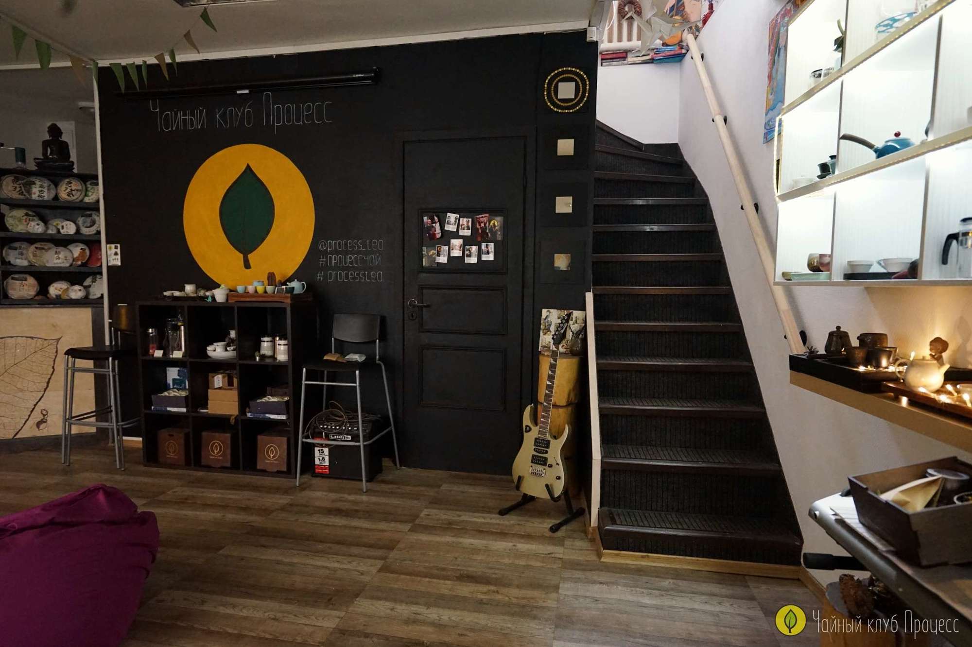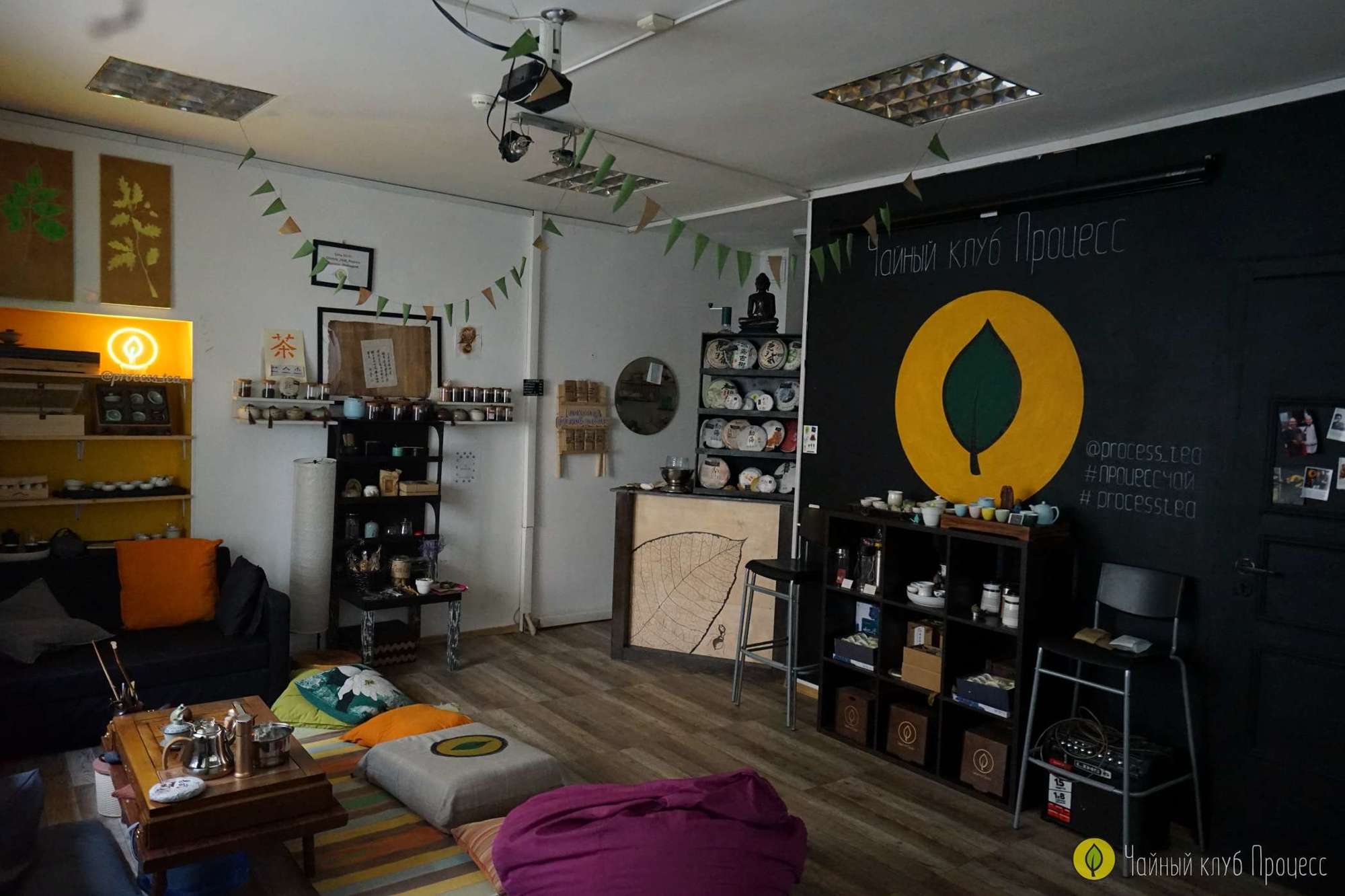 На первом этаже расположен зал где вы можете посмотреть посуду, выбрать чай, проконсультироваться с чайным мастером о чае. Так же здесь проводятся разные мероприятия такие как: кинопоказ, чайные церемонии, бизнес встречи и т.д. На втором этаже расположены два зала для самостоятельного заваривания и различных мероприятий. Более подробно о них можно посмотреть тут.